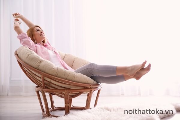 Bạn có thể tăng cường cảm giác thoải mái và giảm stress hơn nữa bằng cách đắp thêm một chút nệm hoặc thảm trên ghế papasan. Khi cơ thể được giải phóng áp lực và thư giãn trên chiếc ghế này, tâm trạng của bạn cũng sẽ được cải thiện, giúp giảm căng thẳng và tăng cường sức khỏe tinh thần.