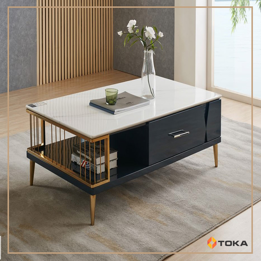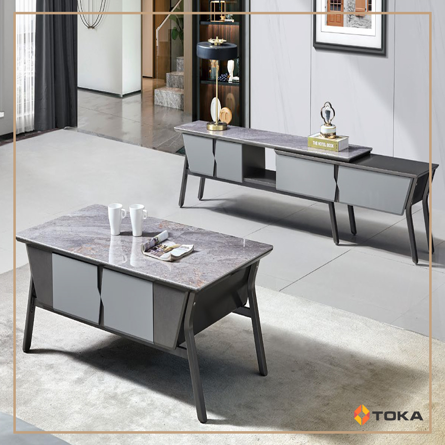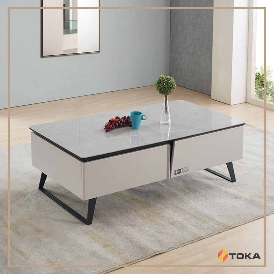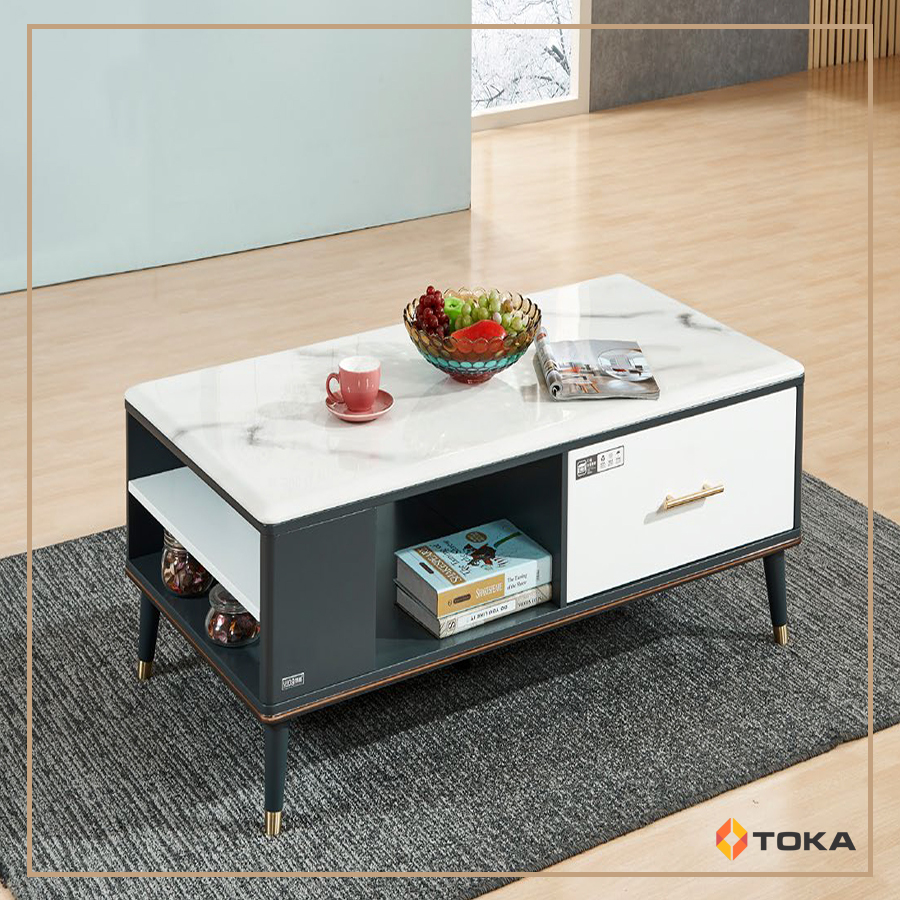 - Bàn trà nhập khẩu mặt đá TOKA kết hợp cùng sofa da, sofa nỉ sẽ tạo nên một không gian phòng khách hoàn hảo. Các mẫu bàn trà chữ nhật phù hợp với phòng khách rộng từ 25m2, nếu phòng khách nhà bạn có diện tích hạn chế bạn có thể kết hợp cùng những mẫu bàn trà tròn hoặc bàn trà thông minh để tiết kiệm diện tích phòng khách.