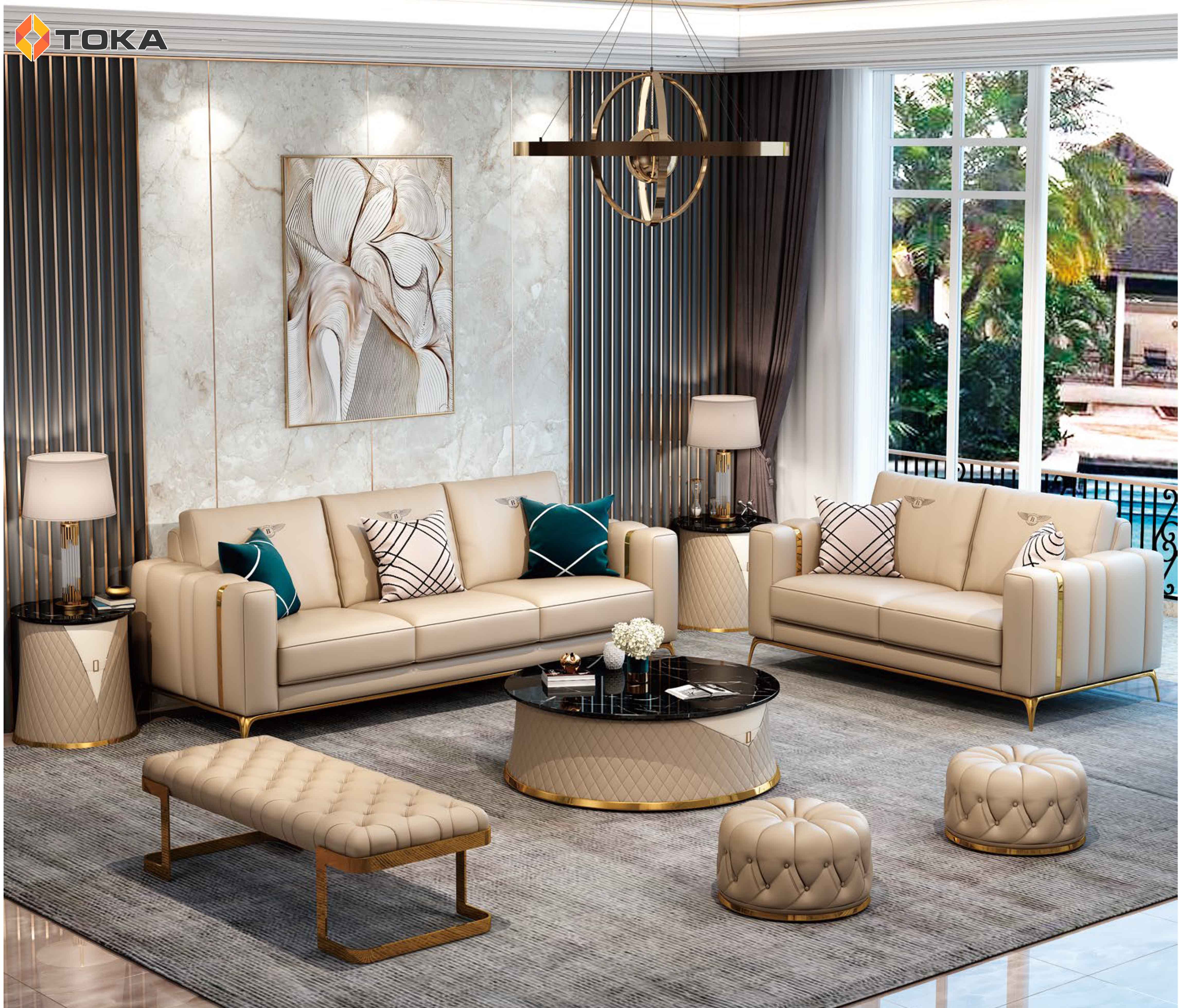 Phần khung kim loại mạ vàng có khả năng chịu lực rất tốt, chính vì thế mà khách hàng luôn tin tưởng vào sự bền bỉ theo thời gian của Sofa tại TOKA.