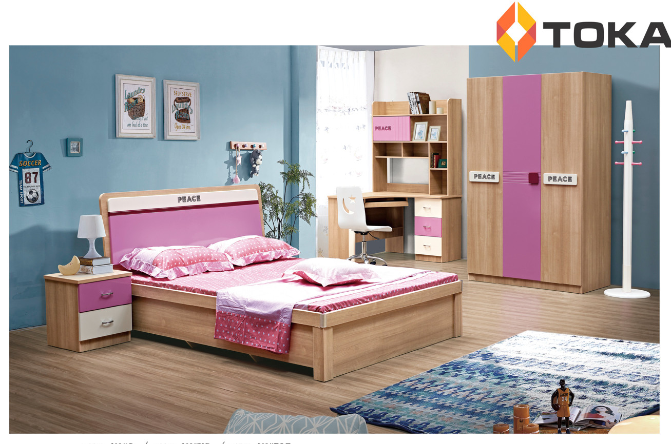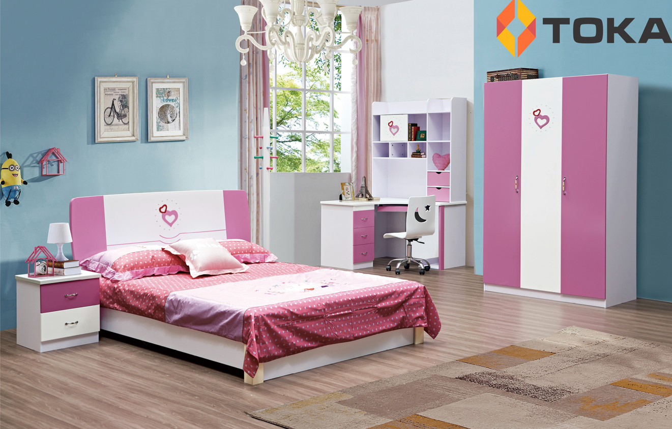 Tủ quần áo hồng gỗ chữ dễ thương cho các bé gái kèm theo bộ giường và bàn học