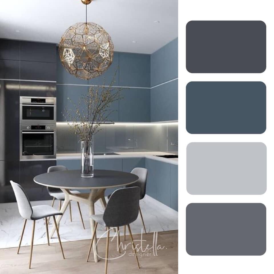 Tông màu xám kết hợp với màu xanh cũng tạo ra sự tương phản nhẹ, và làm cho căn phòng có cảm giác tươi mới và mát mẻ.