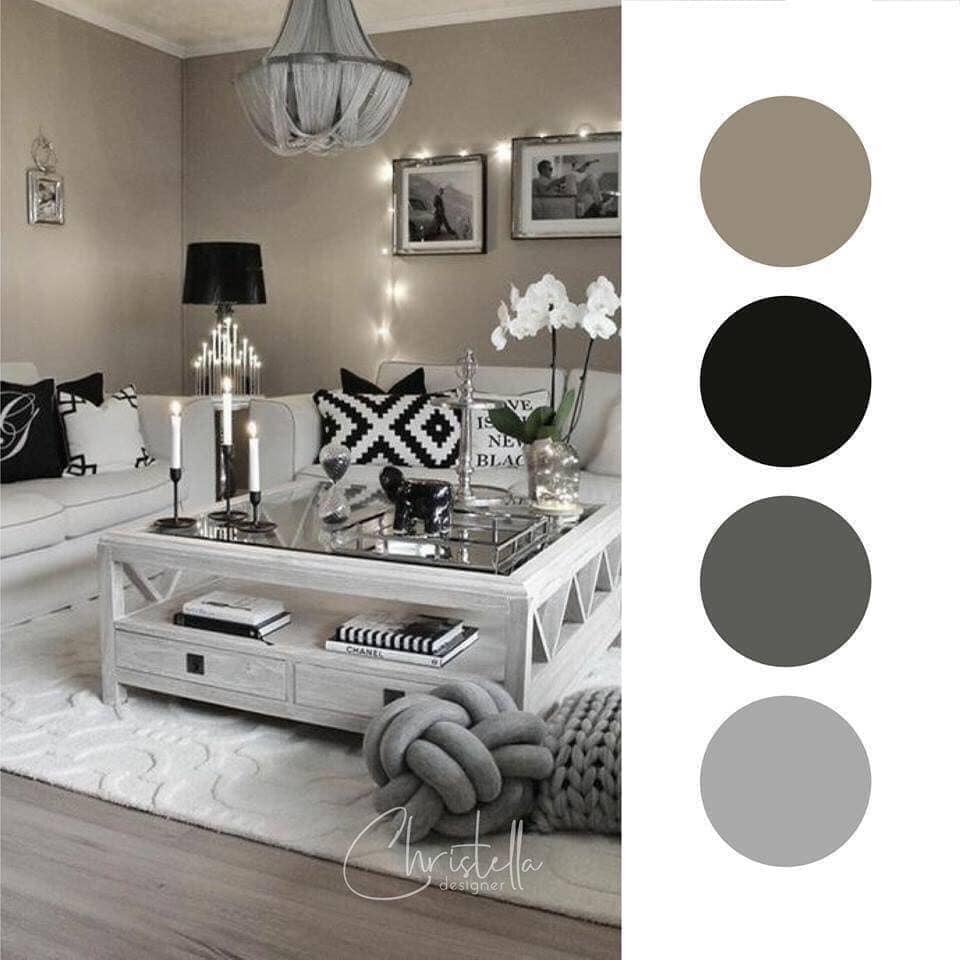 Điều quan trọng cần lưu ý “cách phối màu cho phòng khách có diện tích nhỏ” là bạn cần sử dụng màu trắng làm màu chủ đạo, màu trung gian (một trong những sắc thái của màu xám) như một giải pháp màu cho các mặt hàng lớn (ghế sofa hoặc ghế bành) và màu đen – để sử dụng đo trong trang trí và vải rèm.