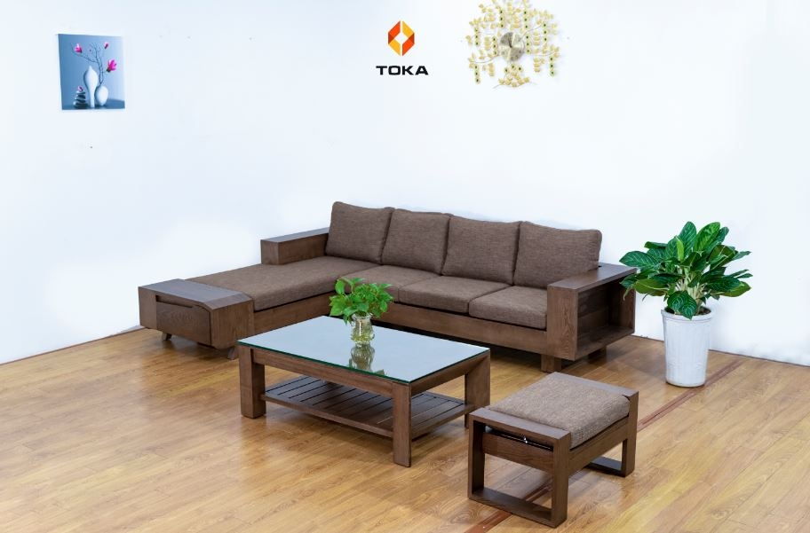 GS010 không chỉ là nơi để tiếp khách, nơi sinh hoạt chung của cả gia đình mà còn nó còn được tận dụng làm nơi nghỉ qua đêm dành cho khách. Bộ sofa góc chữ L mà Nội thất Toka muốn giới thiệu trong bài viết này gồm có 3 món đồ đó là bộ sofa ggóc chữ L kèm 1 táp, 1 bàn trà, 1 đôn kèm đệm. Tất cả tạo nên tổng thể hài hòa và vô cùng độc đáo.