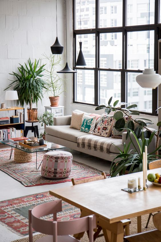 Trong sắc trắng của sơn nhà và thảm xám đã góp phần làm nổi bật bộ bàn ghế salon màu kem Bằng những dấu ấn nhẹ nhừng như một bức tranh, một vài chậu cảnh nhỏ càng khiến căn phòng trở lên sinh động. Nếu như để ý kỹ, chúng ta thấy những đồ vật trong gia đình khá nhỏ nhắn, để phần diện tích cho không gian đi lại, đây cũng là ý tưởng không tồi đúng không nào?